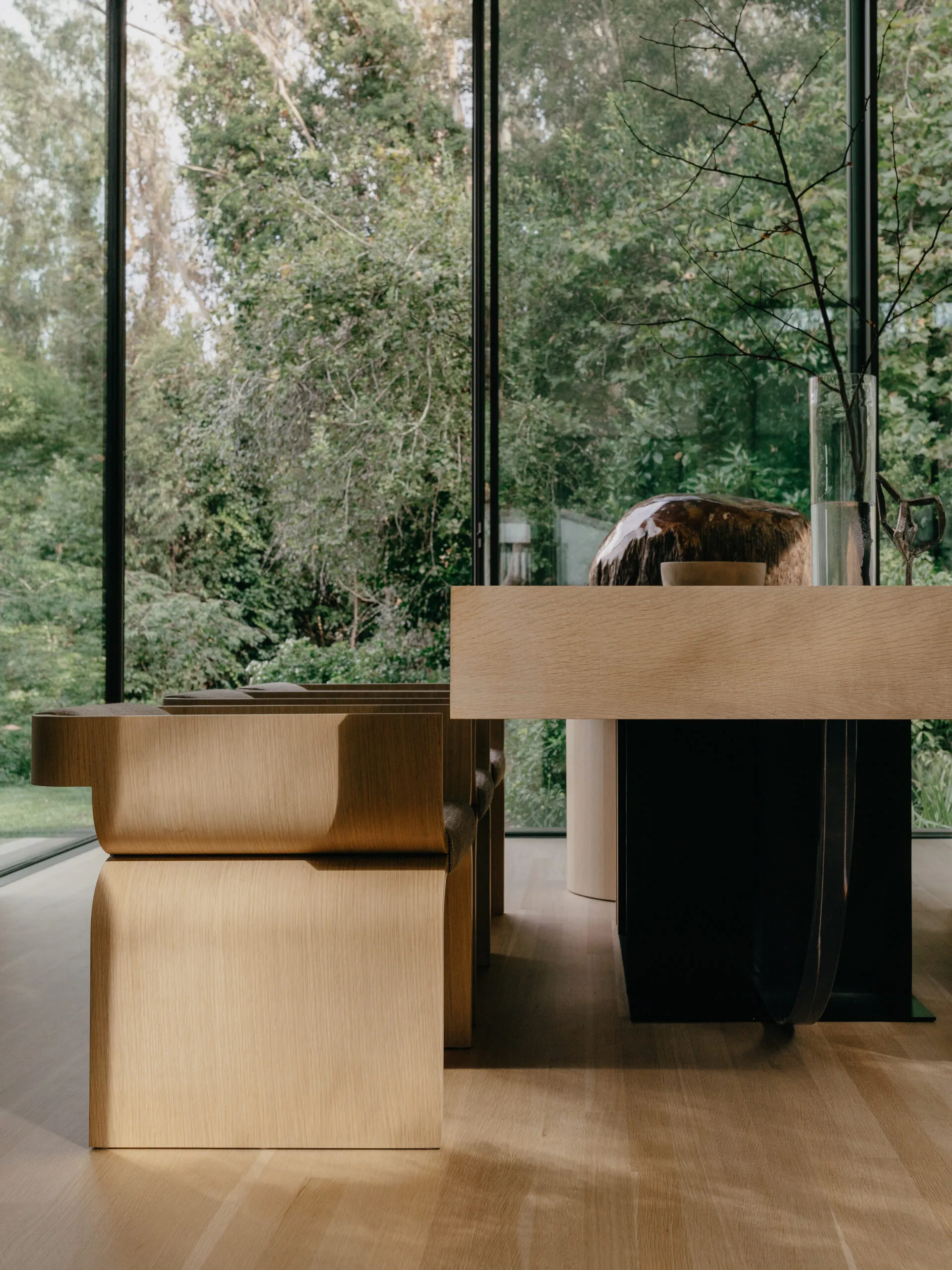 - Created custom furniture pieces integrating natural elements like petrified wood