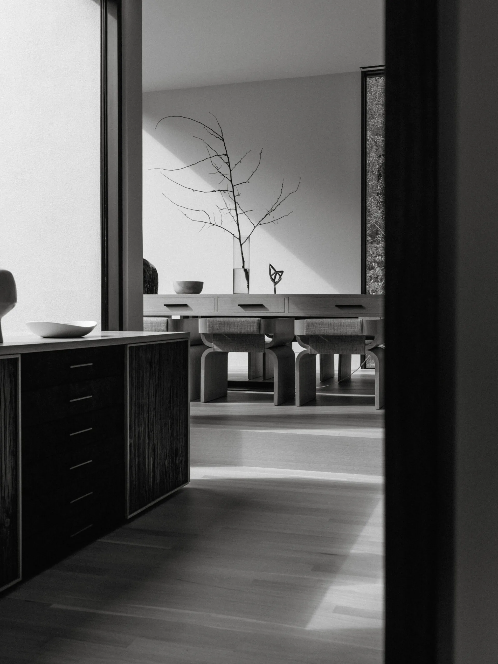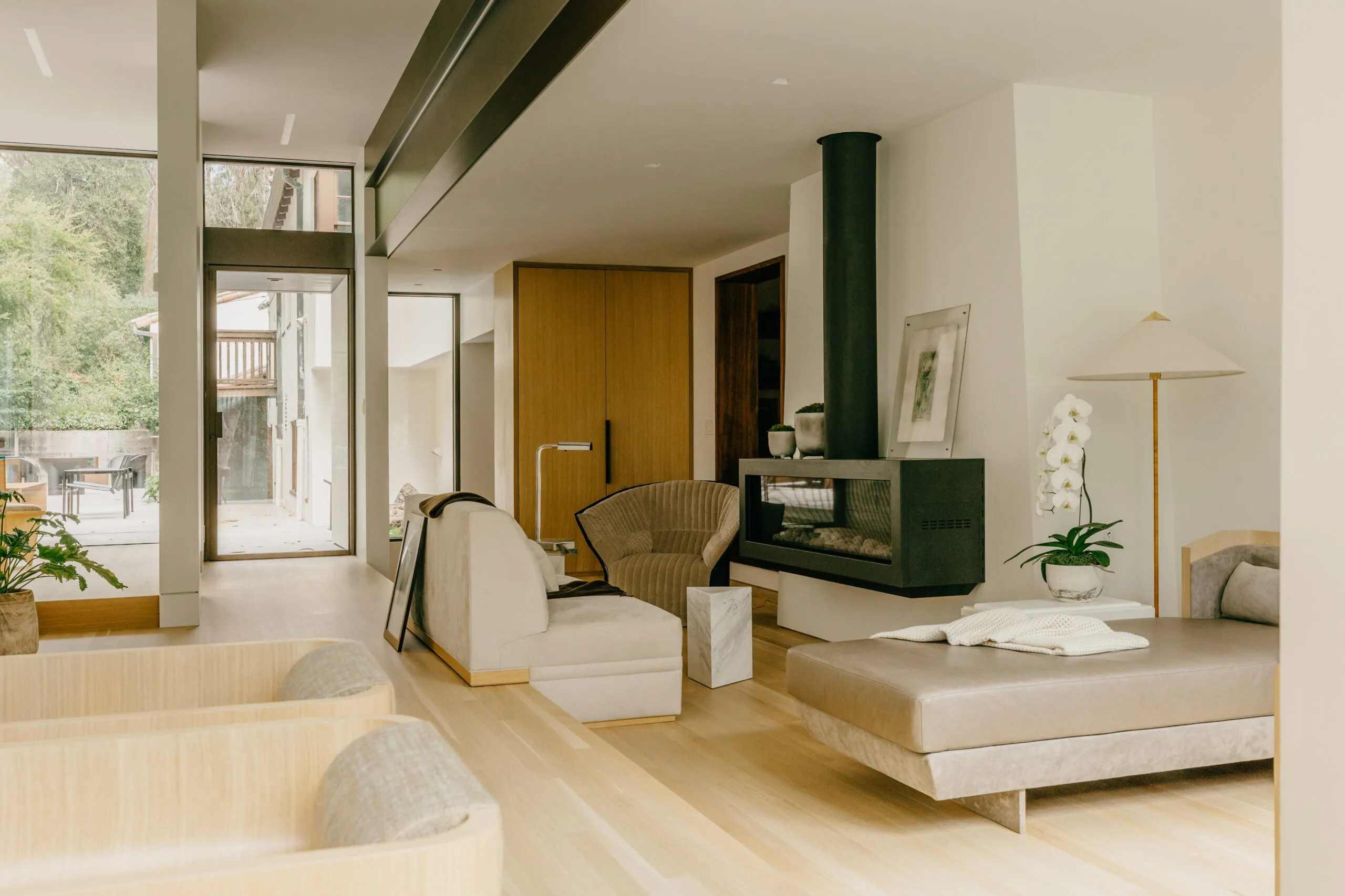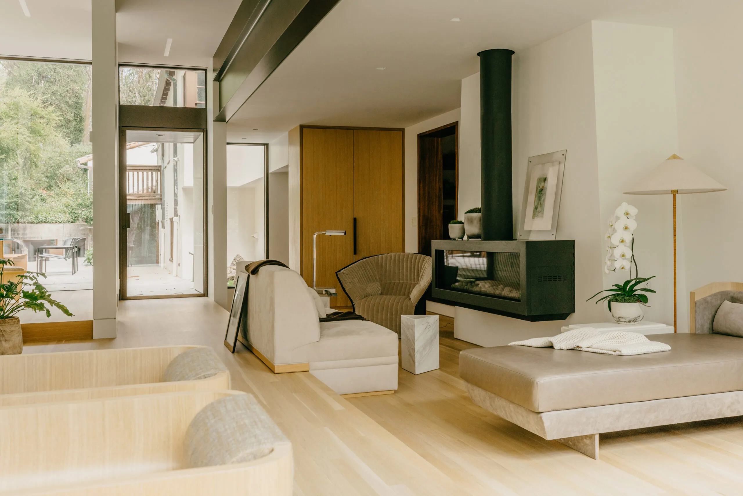 Set in a former general’s residence at the Presidio in San Francisco, this two-phase project included the furnishing of the main historic home and the design of a modern glass-enclosed addition.